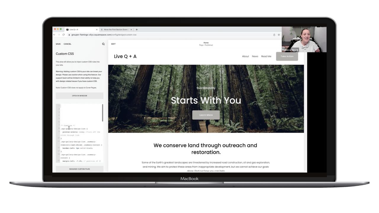 I teach Squarespace designers how to confidently use custom code to go beyond the Squarespace editor, so they can build standout, custom sites without leaving Squarespace behind.
