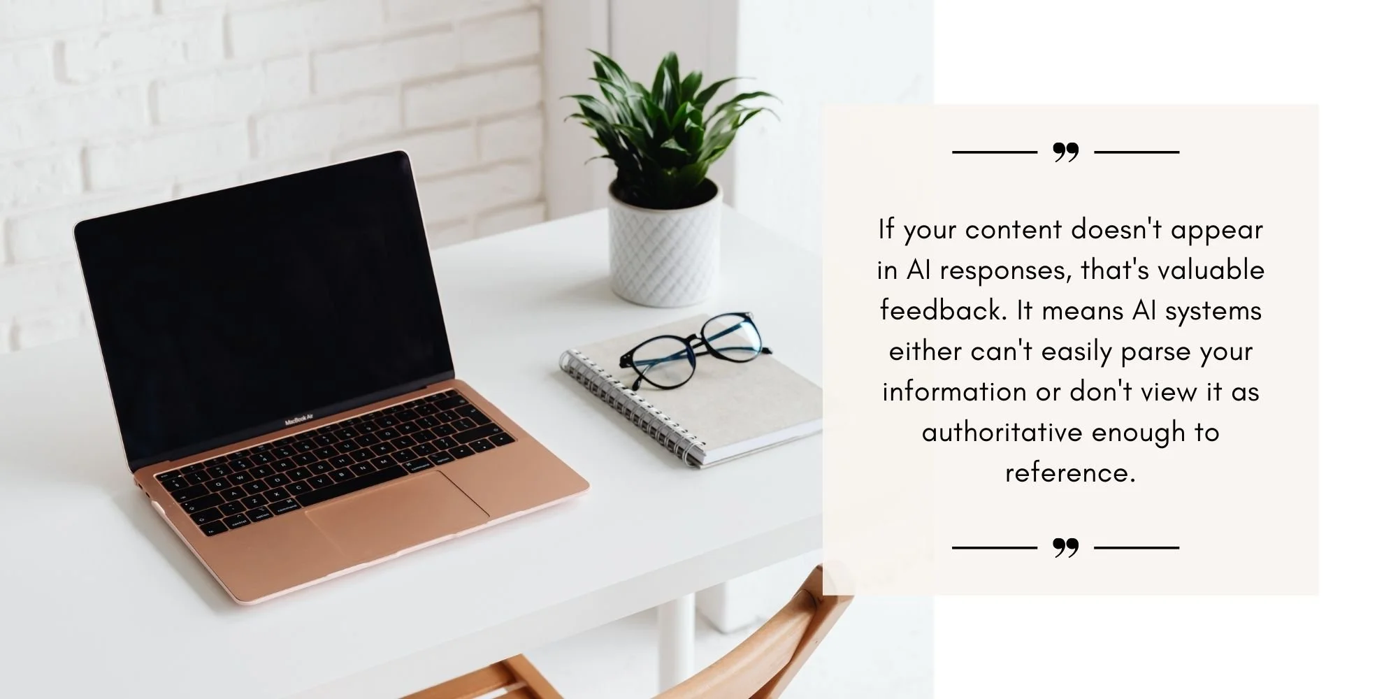 If your content doesn't appear in AI responses, that's valuable feedback. It means AI systems either can't easily parse your information or don't view it as authoritative enough to reference. This test reveals exactly where you stand in the AI visibility landscape.